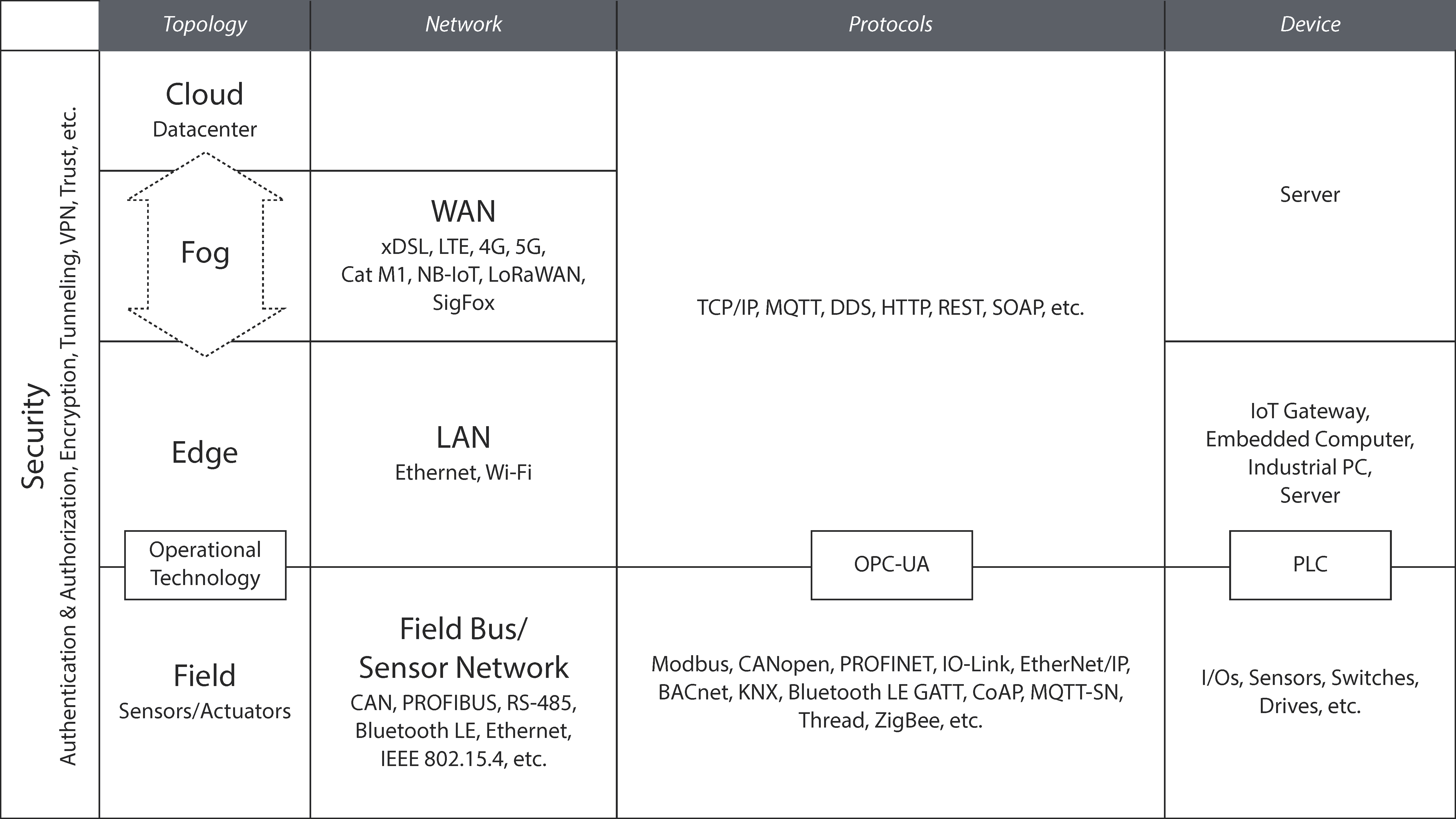 Dem Thema Sicherheit kommt beim Edge Computing eine wichtige Rolle zu. Im industriellen Umfeld findet Edge Computing zwischen Cloud und der Feldebene statt, also am Übergang zwischen IT und OT (Operational Technology, also SPS und SCADA Systeme).