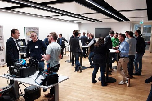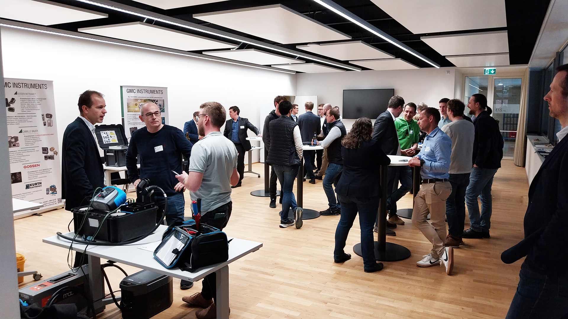 Im Anschluss gab es die Möglichkeit, in einem eigenen Ausstellerbereich diese Test- und Prüfsysteme genauer kennenzulernen und bei Brötchen und Getränken nicht nur mit den Herstellern, sondern auch mit den anderen Workshop-Teilnehmer:innen ins Gespräch zu kommen.