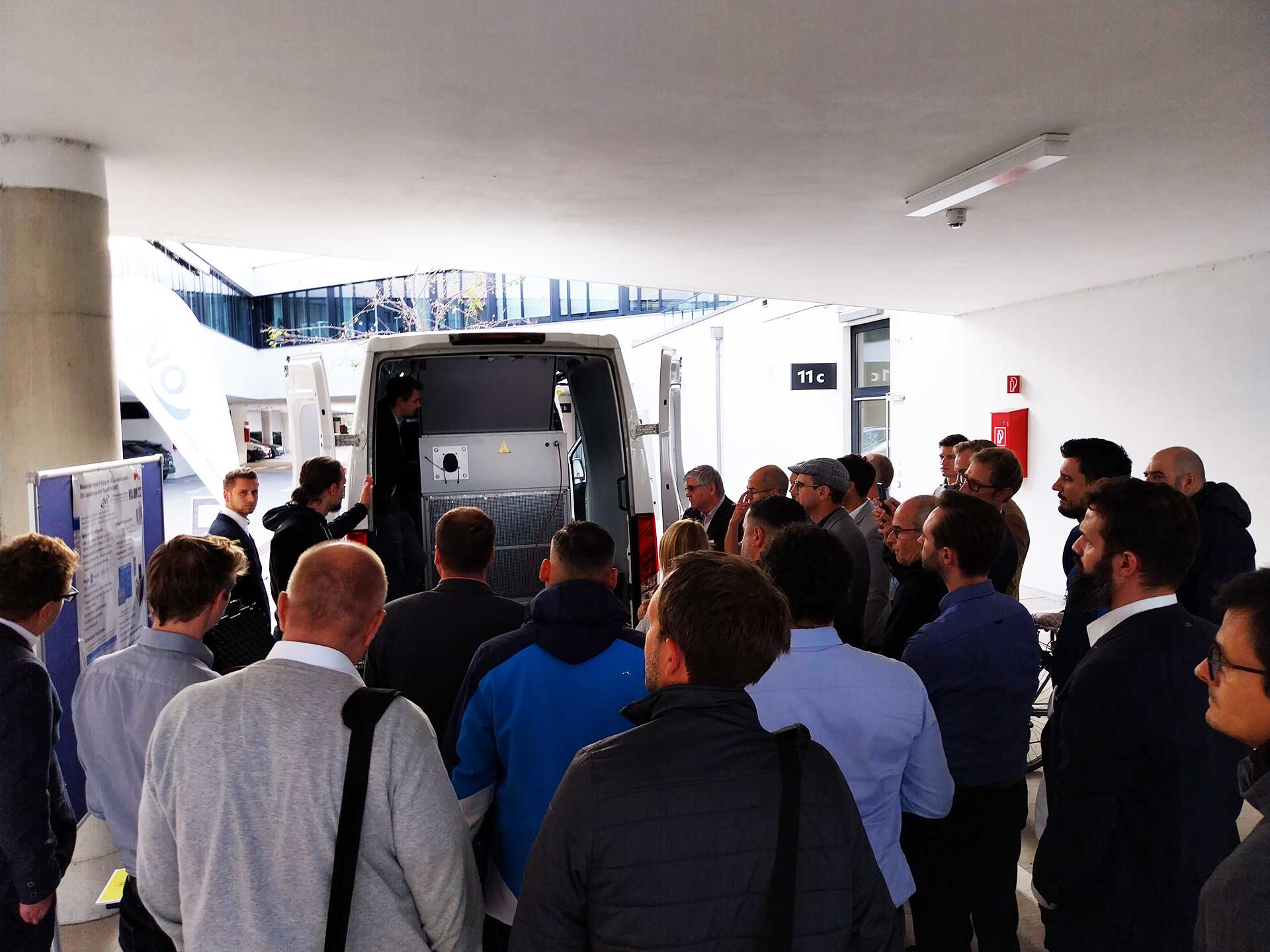 Die Besichtigung des Prüfgerätedemonstrators, der vom Projektpartner KS Engineers extra nach Klagenfurt gebracht worden war, sowie die Möglichkeit zum Netzwerken im Rahmen eines geselligen Ausklangs rundeten den informativen Nachmittag ab.