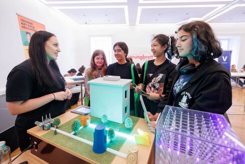 Mit einer VR-Brille eine Photovoltaik-Anlage planen, einen Schlüsselanhänger am Computer entwerfen und in 3D ausdrucken oder an einer Aufzugskabinenbau-Challenge teilnehmen: Am 13. Oktober hieß es im Haus der Ingenieur:innen in Wien wieder „Hands on Tech“ für Mädchen der Unter- und Oberstufe. Rund 700 Mädchen tauchten in die vielfältige Welt der Elektro- und Informationstechnik ein und informierten sich über die Berufe der Zukunft. Auch Bundesminister Martin Kocher mischte sich unter die Besucherinnen.