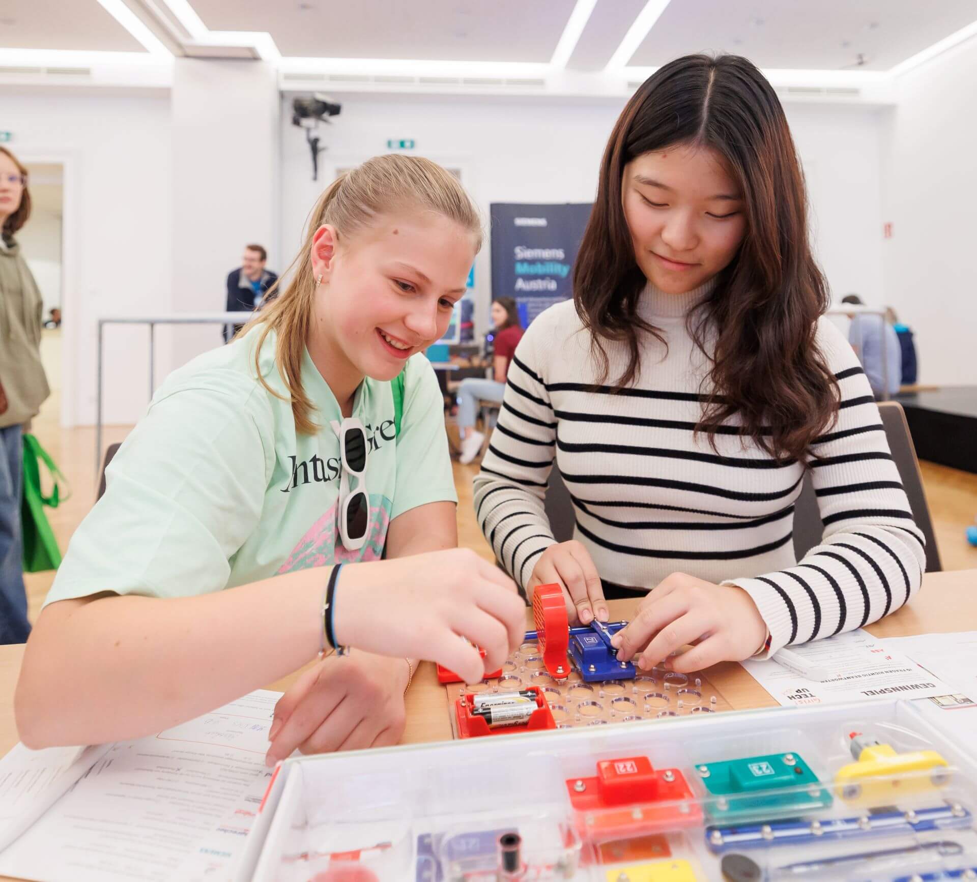 Girls! TECH UP bietet Schülerinnen die Möglichkeit, verschiedene Zukunftsperspektiven und Karrieremöglichkeiten in der Elektrotechnik aus erster Hand zu erfahren. Innovative Technologien und Erfindungen für eine nachhaltige Zukunft standen bei vielen Stationen im Mittelpunkt. Auch erste Kontakte für berufspraktische Tage, ein Praktikum oder Schnuppertage für eine Lehre konnten die Mädchen beim Erlebnistag knüpfen. Waren die Mitmachstationen absolviert, gab es noch Samsung Galaxy A14 Smartphones, gesponsert von A1, sowie Klassenexkursionen zu gewinnen.