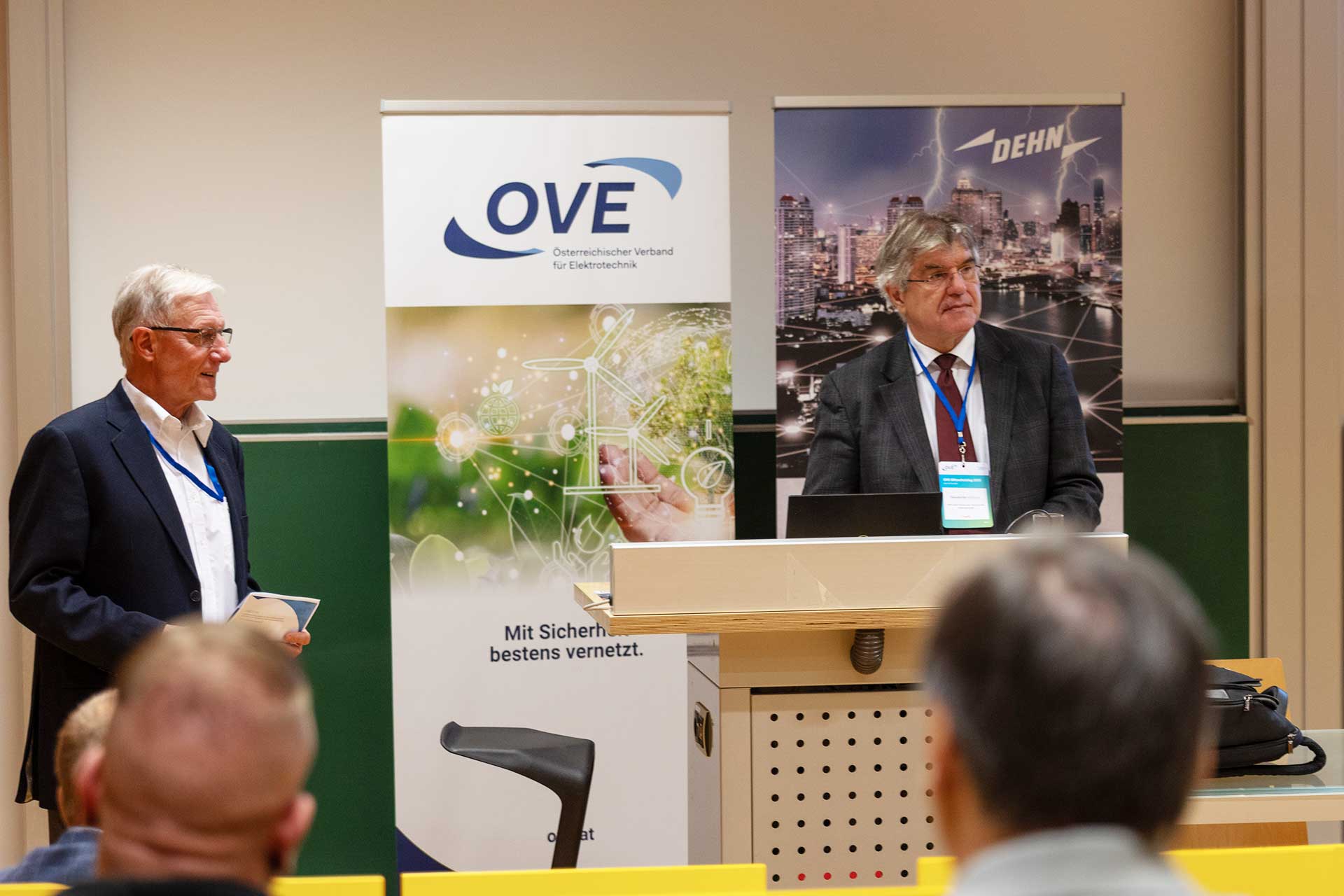 Stephan Pack (Vorsitzender des TK BL „Blitzschutz“) berichtete aus der Forschungspraxis des Hochspannungsprüffelds an der TU Graz und präsentierte eindrucksvolle Versuche zur Simulation von Blitzentladungen. In der geschützten Laborumgebung wurden mit künstlichen Blitzstoßspannungen und -strömen reale Einschlagszenarien nachgestellt.