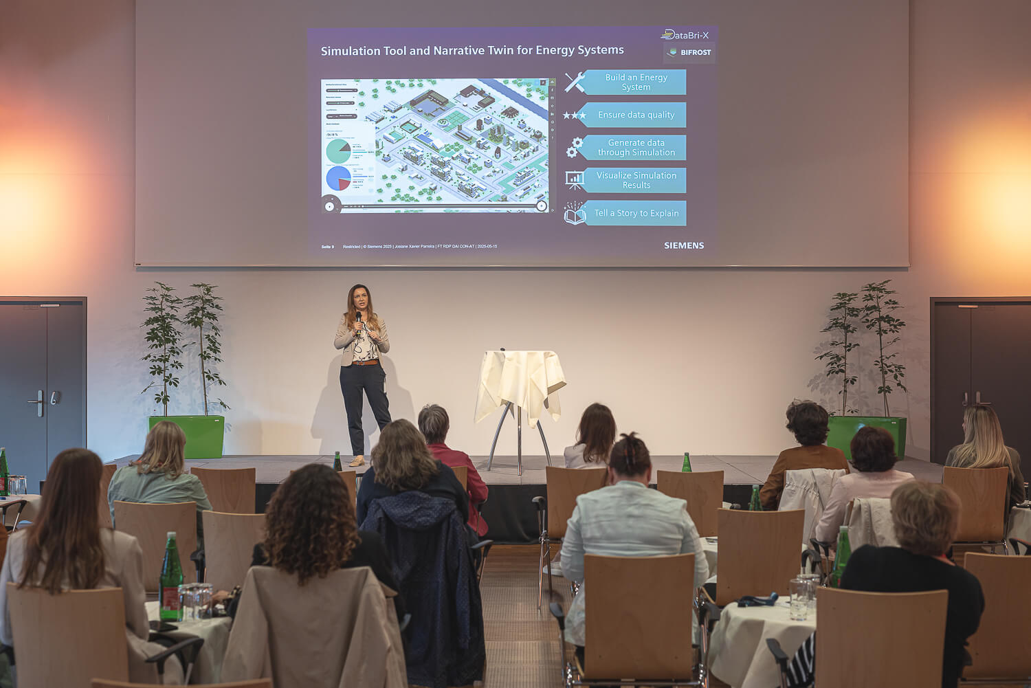 Im Anschluss hielt Josiane Xavier Parreira, Senior Key Expert im Bereich Research & Design, einen Impulsvortrag mit dem Titel „Digitalization with purpose – Leveraging technology to drive sustainability“.