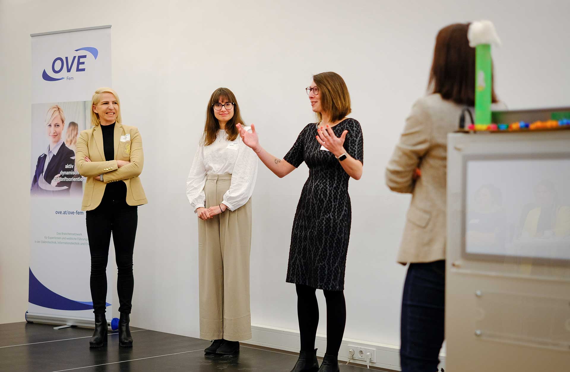 Erstmalig im Rahmen des OVE Fem-Neujahrsfrühstücks erzählten drei Technikerinnen über ihre sehr individuellen und unterschiedlichen Wege in die Technik und zogen mit spannenden Einblicken die Zuhörerinnen in den Bann.