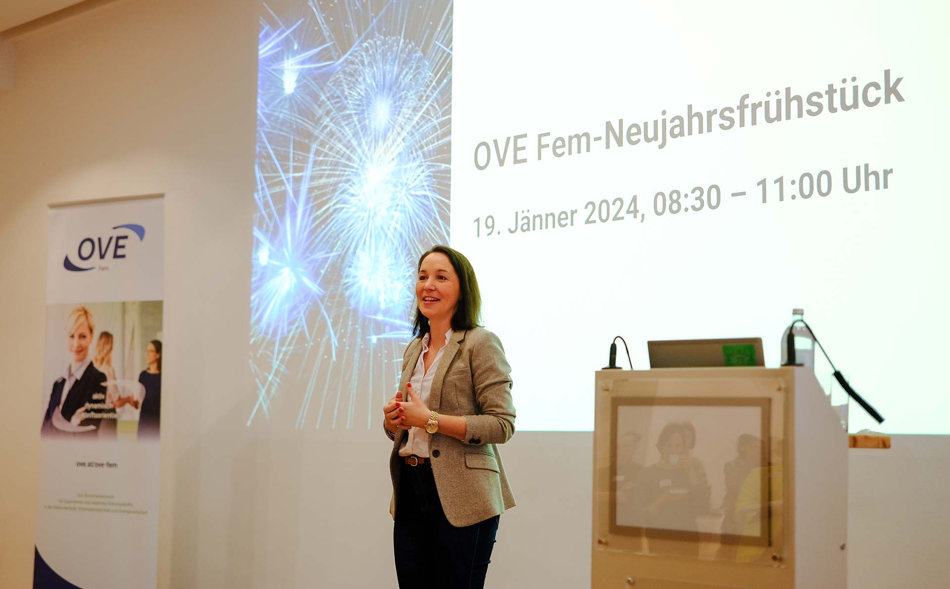 Im Rahmen ihrer Begrüßung hoben sowohl OVE Fem-Vorsitzende Michaela Leonhardt als auch OVE-Generalsekretär Peter Reichel die Vorbildrolle weiblicher Elektrotechnikerinnen hervor.