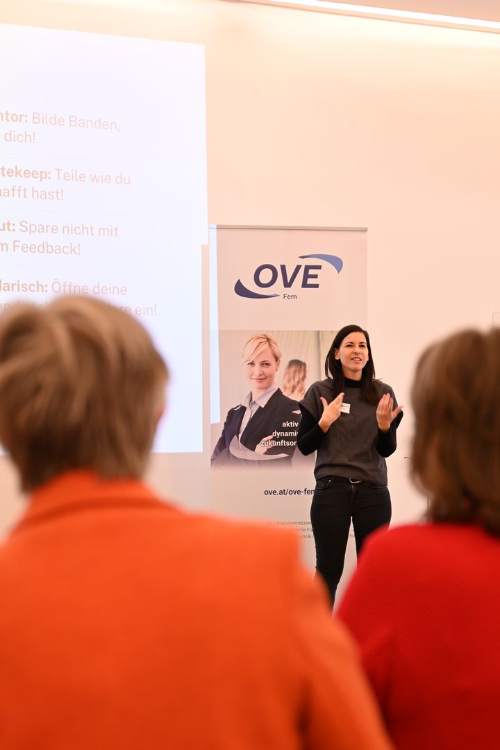 Nach der Begrüßung durch OVE-Generalsekretär Peter Reichel und OVE Fem-Vorsitzender Michaela Leonhardt, bildete die Keynote von New Workfluencerin & Business Mental Coach Andrea König – vielen im Netzwerk bekannt als Gastkommentatorin im OVE Fem-Newsletter – den Auftakt der Veranstaltung.