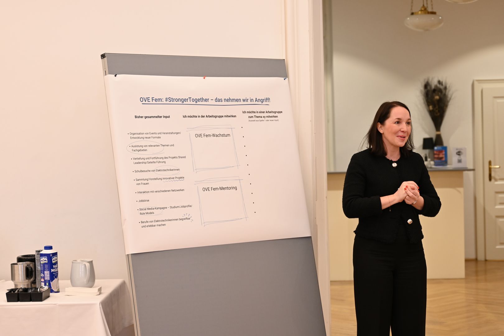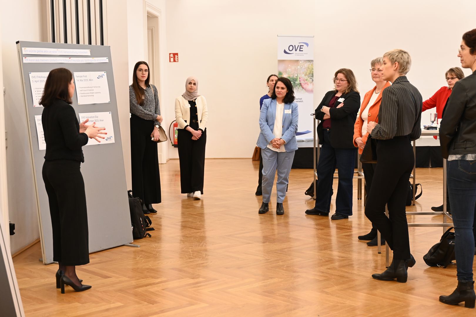 Im zweiten Teil der Veranstaltung standen der Ideen-Austausch und das Netzwerken im Mittelpunkt. Gemeinsam wurde über neue Veranstaltungsformate nachgedacht, die Erarbeitung eines OVE Fem-Mentoring-Programms diskutiert und überlegt, welche Technik-Expertinnen im Rahmen von Tagungen und Symposien einen aktiven Beitrag als Vortragende leisten könnten – nicht nur, um ihre Expertise einzubringen, sondern auch um Frauen in der Technik zu mehr Sichtbarkeit zu verhelfen.