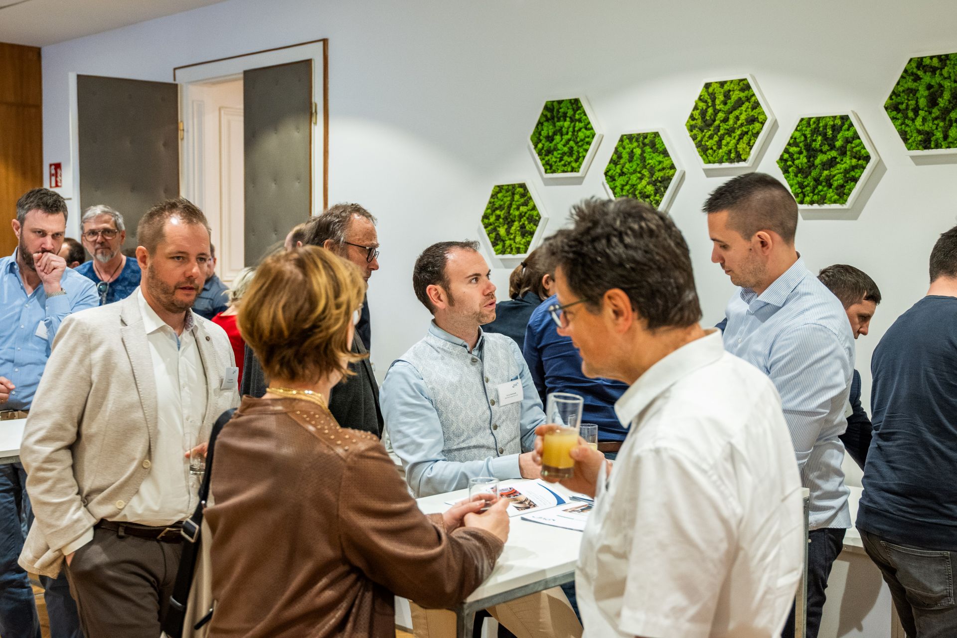 Auf die Vorträge folgte ein gemütlicher Ausklang am Buffet. Dieser bot die Gelegenheit, neue Kontakte zu knüpfen und sich mit Branchenkolleg:innen und Ausstellern auszutauschen.