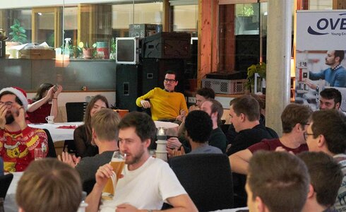 Max Brestan, OVE Young Engineers Graz, gewährt einen Einblick in die Weihnachtsfeier 2023, die die Young Engineers alljährlich zusammen mit dem Hochspannungszeichensaal begehen.