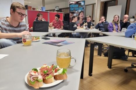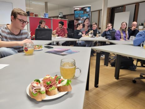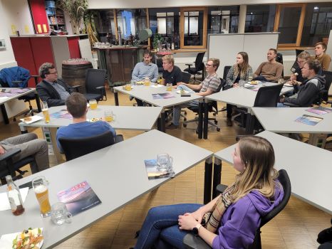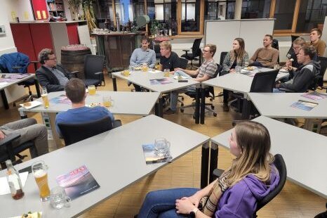 In angenehmer Atmosphäre und bei köstlich belegten Brötchen sowie erfrischenden Getränken teilte er zahlreiche Anekdoten aus seinem Studium, sprach über die Anfänge seines Berufslebens und gab spannende Einblicke in seine aktuelle Rolle als Führungskraft. Dabei ergab sich eine lebhafte Diskussionsrunde, in der viele Fragen gestellt und angeregt diskutiert wurden.