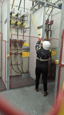Die erste Einheit des mehrstufigen Kurses fand bereits Anfang Februar im Hochspannungslabor der HTL Bulme statt. Dabei wurden, neben einer kurzen theoretischen Einheit zu den zutreffenden Normen auch auf die unterschiedlichsten Mittelspannungsschaltgeräte eingegangen.Die Teilnehmenden konnten nicht nur die verschiedensten Schaltertypen begutachten, sondern auch nach dementsprechender Einschulung und der notwendigen persönlichen Schutzausrüstung, Schalthandlungen unter Spannung durchführen.