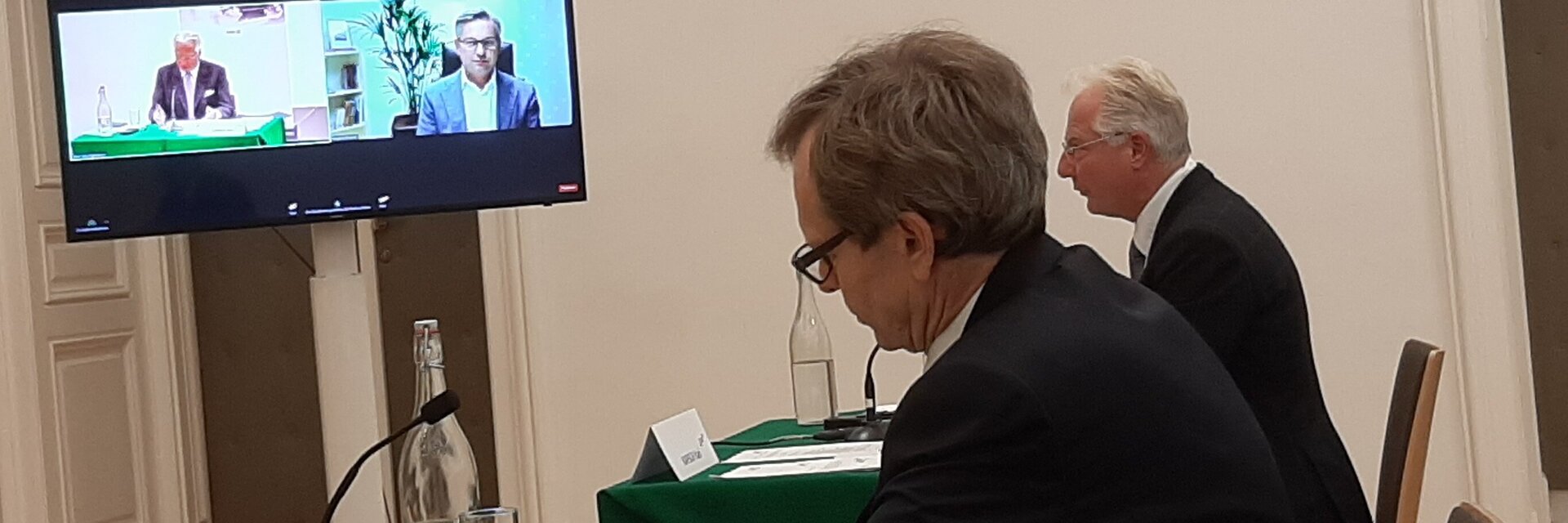 Im Rahmen der Generalversammlung gab dann auch Dr. Magnus Brunner, Staatssekretär im Bundesministerium für Klimaschutz, Umwelt, Energie, Mobilität, Innovation und Technologie, einen Überblick über die konkreten Schritte der Regierung auf dem Weg zur Klimaneutralität Österreichs. Er bezeichnete das Erneuerbaren Ausbau Gesetz als das größte Energiepaket der vergangenen Jahre, welches das komplette Fördersystem für Ökostrom auf ganz neue Beine stelle. Es brauche für jede erneuerbare Technologie die jeweils richtigen Rahmenbedingungen, so Brunner. Nicht überall in Österreich könnten die unterschiedlichen Technologien gleich verteilt werden, daher seien individuelle Lösungen gefordert. Intelligente Klimaschutzpolitik könne aber in jedem Fall ein Innovationsmotor für die österreichische Wirtschaft und Gesellschaft sein. Vor allem im Wasserstoff sieht Brunner einen zentralen Baustein der Energiewende. Im Anschluss an seinen Vortrag stand der Staatssekretär den OVE-Mitgliedern dann noch für eine angeregte Diskussion zur Verfügung.