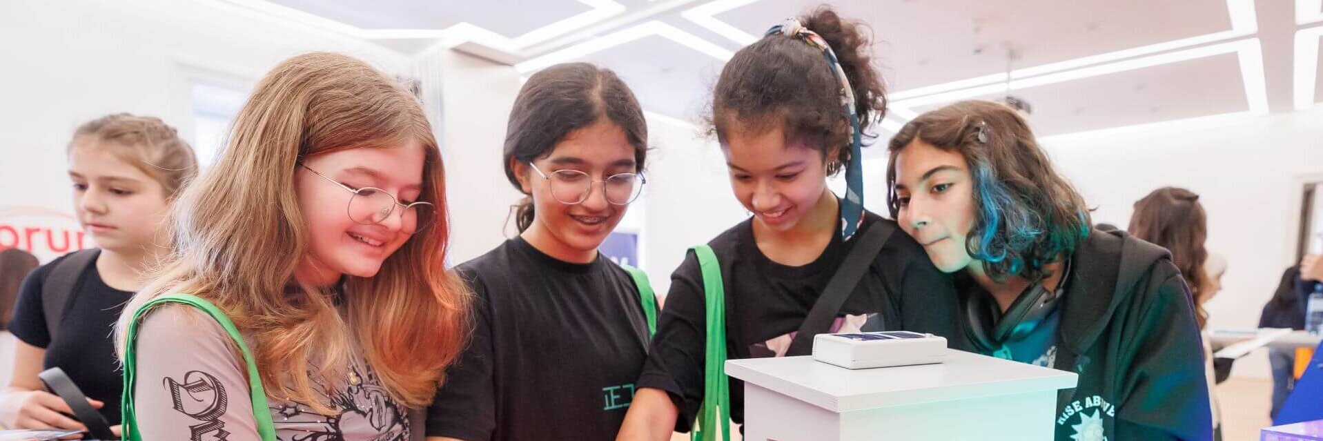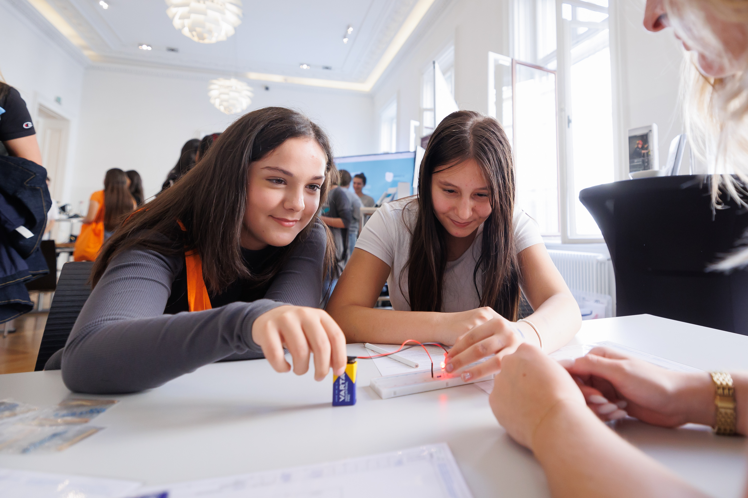 Mittels VR-Brille ein Dorf mit Strom versorgen, einen Roboter programmieren, Dioden zum Leuchten bringen oder einen Solarkäfer bauen: Bei den vielen Mitmachstationen konnten die Mädchen der Unter- und Oberstufe nicht nur ihr eigenes technisches Geschick testen, sondern auch weibliche Vorbilder kennenlernen und sich Karriere-Tipps aus erster Hand holen. „Angreifen, ausprobieren, Fragen stellen – bei Girls! TECH UP ist es uns besonders wichtig, dass die Mädchen mit der Technik tatsächlich in Berührung kommen. Es ist immer wieder schön zu sehen, mit welcher Begeisterung sich die Schülerinnen einbringen“, so Initiatorin Michaela Leonhardt.