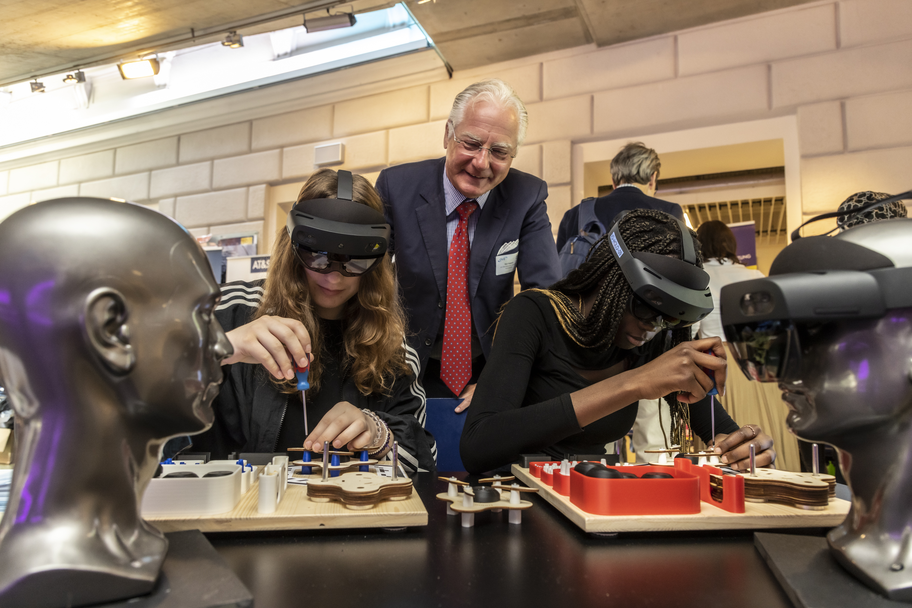 Einen Roboter einen Zauberwürfel lösen lassen, einen Elektromotor zum Laufen bringen oder mittels Anleitung einer HoloLens-Brille in wenigen Schritten eine Drohne bauen: Bei zahlreichen Mitmachstationen konnten die Schülerinnen ihr technisches Talent entdecken und auch gleich erste Kontakte zu Top-Unternehmen knüpfen. Neben Technik zum Angreifen gab es für die Mädchen bei Girls! TECH UP auch die Gelegenheit, Frauen in technischen Berufen kennenzulernen. Erfolgreiche Technikerinnen und Ingenieurinnen gewährten ganz persönliche Einblicke in ihren Werdegang und ihren Berufsalltag.