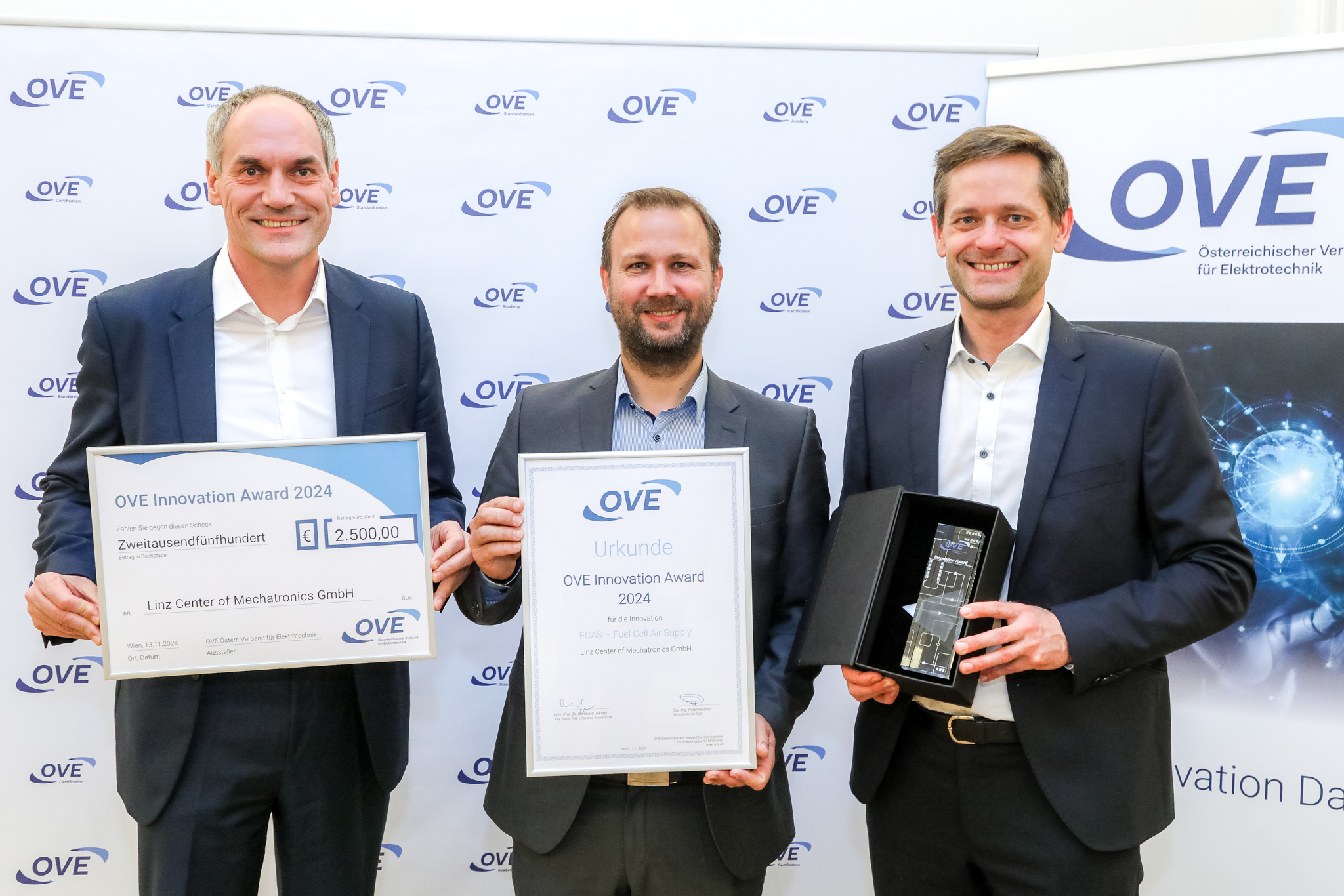 Der erste OVE Innovation Award ging 2022 an ein Team des Spitzenforschungszentrums Silicon Austria Labs für ein besonders effizientes On-Board-Ladegerät für Elektroautos, 2023 holte AVL List den Award für ein modulares Stromversorgungskonzept, im Vorjahr machte die Linz Center of Mechatronics GmbH mit einem Hochgeschwindigkeitselektromotor für Brennstoffzellen-Luftversorgungssysteme das Rennen. Die Siegerprojekte wurden jeweils im Rahmen des OVE Innovation Day präsentiert und erhielten breite mediale Sichtbarkeit. „Die von der Jury in den vergangenen Jahren ausgezeichneten Projekte beweisen, wie viel Innovationskraft in unserer Branche steckt“, freut sich OVE-Generalsekretär Peter Reichel.