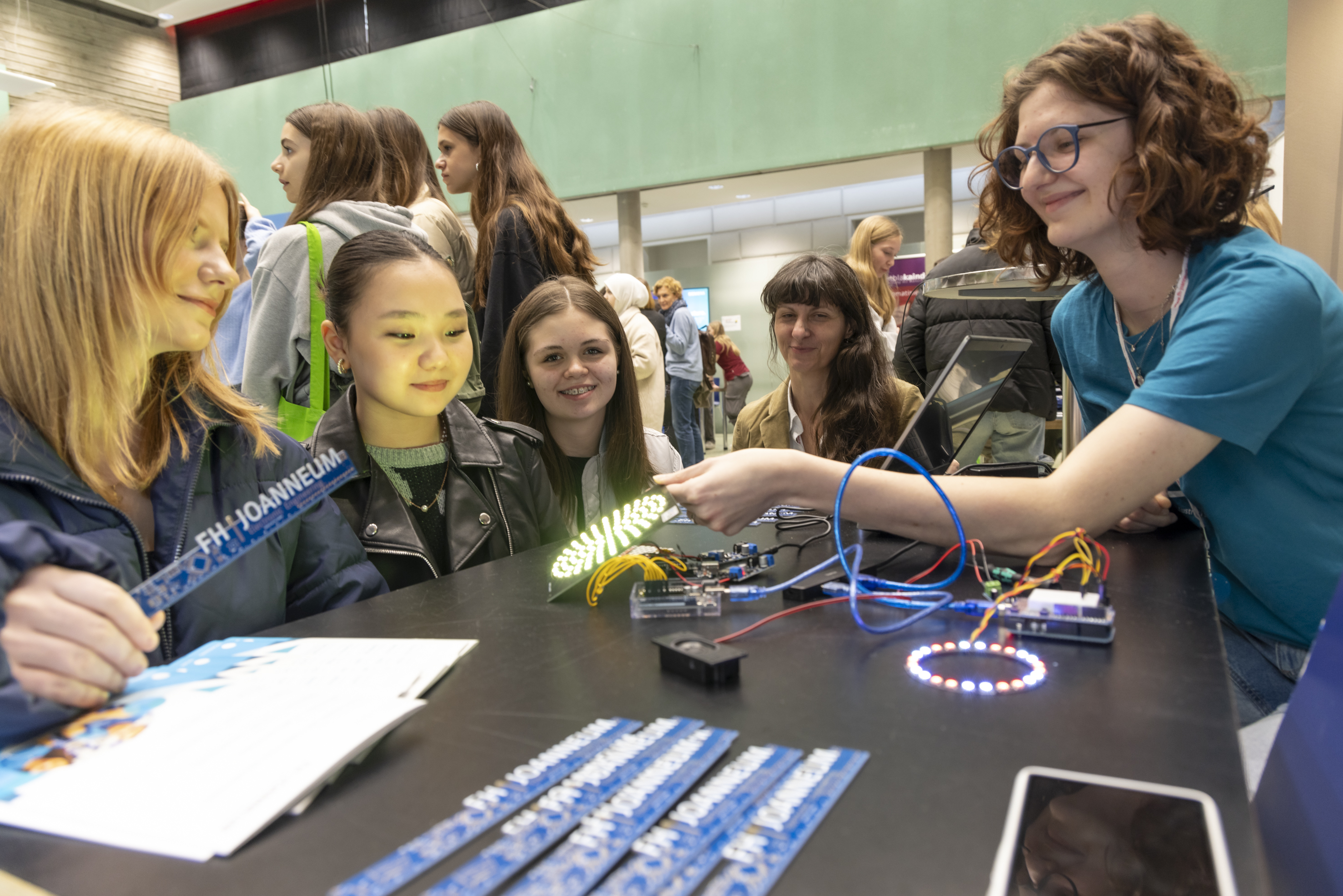 Ein von Lehrlingen selbst gebauter und programmierter Moon Rover, ein Modell-Haus, das mit Strom versorgt werden will, oder Künstliche Intelligenz, mit deren Hilfe Leuchtmuster und Sounds kreiert werden: An den zahlreichen Mitmachstationen erwarten die Besucherinnen Zukunftstechnologien zum Angreifen und Ausprobieren. Technikerinnen, Ingenieurinnen, Studentinnen und weibliche Lehrlinge stehen für persönliche Gespräche zur Verfügung und berichten aus ihrem Arbeitsalltag. „Angreifen, Ausprobieren, Fragen stellen: Bei Girls! TECH UP erleben die Mädchen hautnah, wie ihre berufliche Zukunft in der (Elektro)Technik aussehen kann.“, so Initiatorin Michaela Leonhardt. Im Rahmen eines Gewinnspiels warten attraktive Sachpreise und Exkursionen auf die Gewinnerinnen.