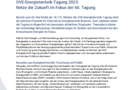 Presseinformation 05.09.2023 OVE-Energietechnik-Tagung 2023: Netze der Zukunft im Fokus der 60. Tagung Bereits zum 60. Mal findet am 18./19. Oktober die OVE-Energietechnik-Tagung statt, der…